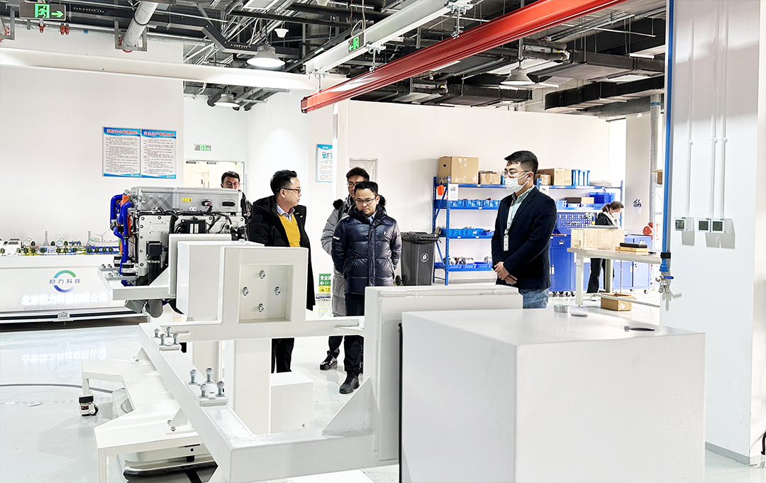 在北京穩(wěn)力“氫啟零碳工廠”,考察組一行參觀了北京穩(wěn)力生產(chǎn)車間、產(chǎn)品展示中心、測(cè)試中心,重點(diǎn)了解了北京穩(wěn)力基于深化自研自制能力而打造的燃料電池系統(tǒng)柔性產(chǎn)線,詢問了燃料電池系統(tǒng)、空壓機(jī)等產(chǎn)品的優(yōu)勢(shì)性能,以及在叉車、清掃車、重卡等市場(chǎng)的應(yīng)用前景。
